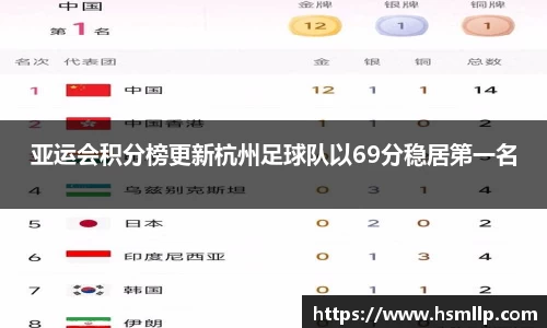 亚运会积分榜更新杭州足球队以69分稳居第一名